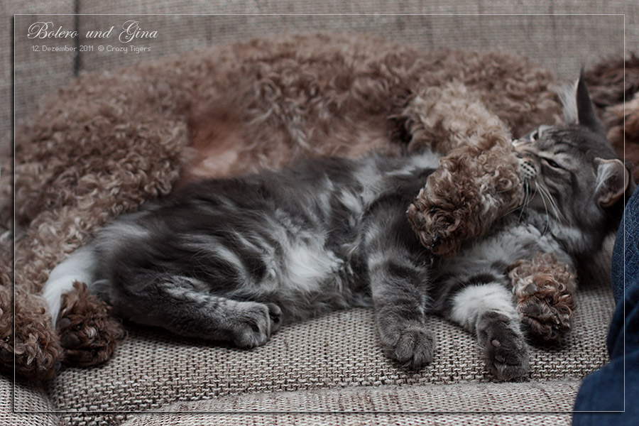 Bolero hat sich diese Schlafposition von unseren Katzen abgeschaut. First Lady mit ihrem Schmusesöhnchen Indiana, der nun 11 Wochen alt ist - neue Bilder online.