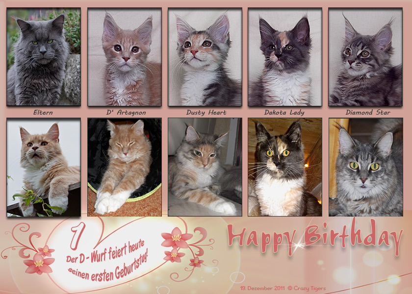 19.12.2011 Wir gratulieren heute unserem D-Wurf zum 1. Geburtstag und danken den "neuen Eltern" für ihr schönes Zuhause. Vielen Dank auch für die Bilder.