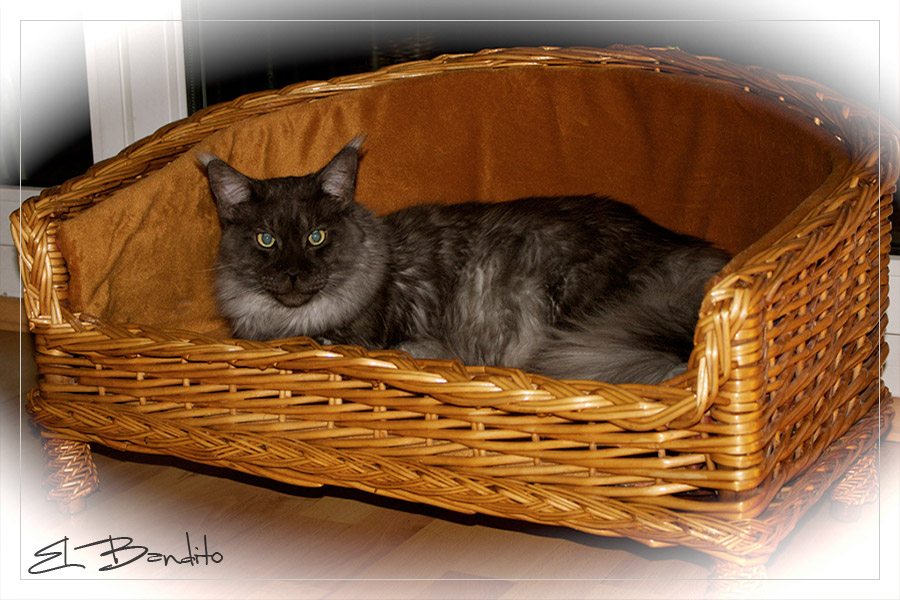 El Bandito fühlt sich wohl in seinem neuen Körbchen. Vielen Dank an Ralf für diesen Schnappschuß.