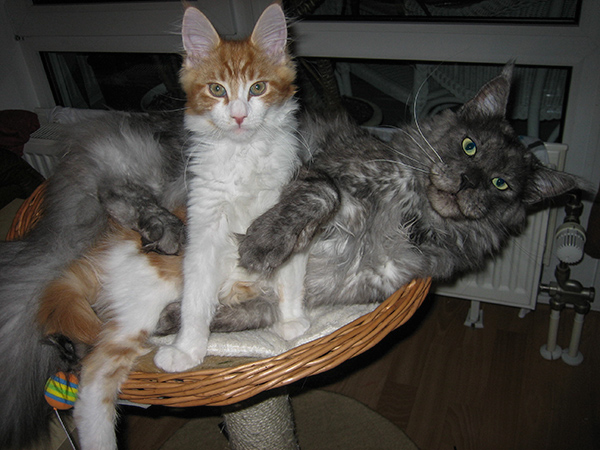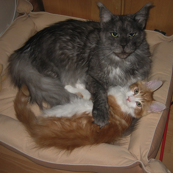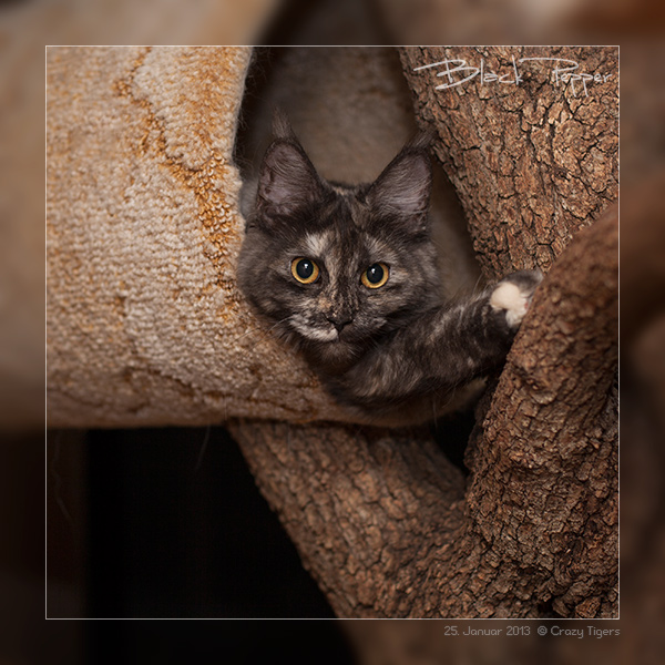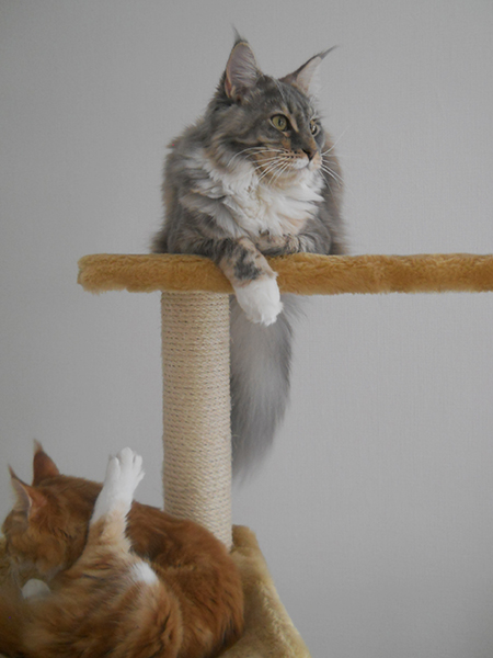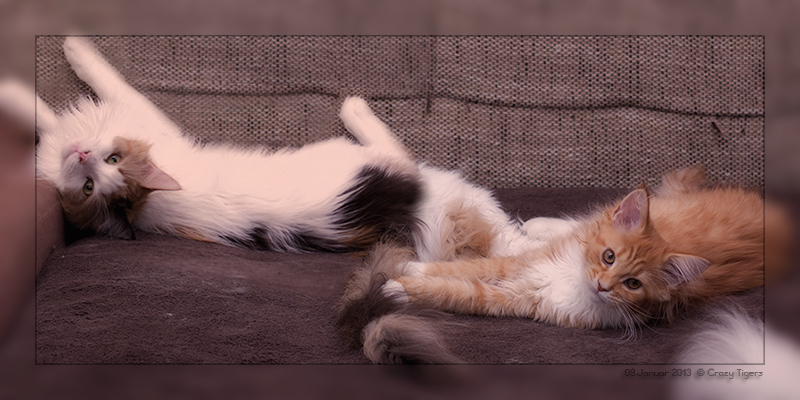 Ein Bild aus der Kinderstube - Nugget und Ophelia spielen auf der Kratztonne und hatten trotzdem kurz Zeit für einen Schnappschuß.