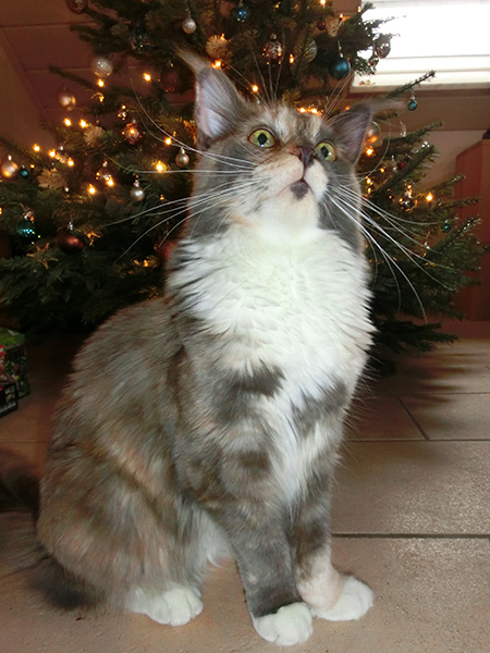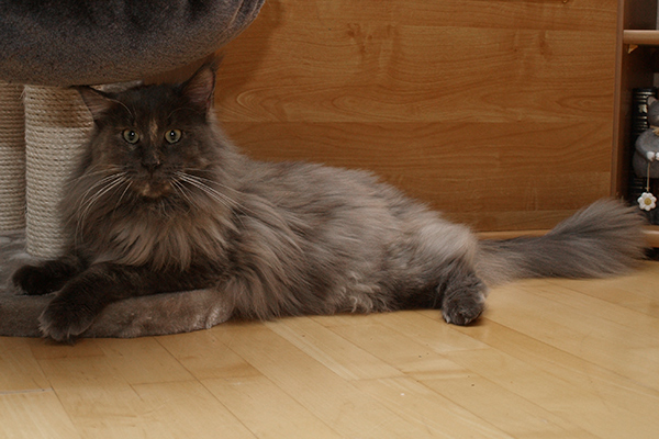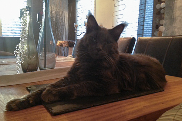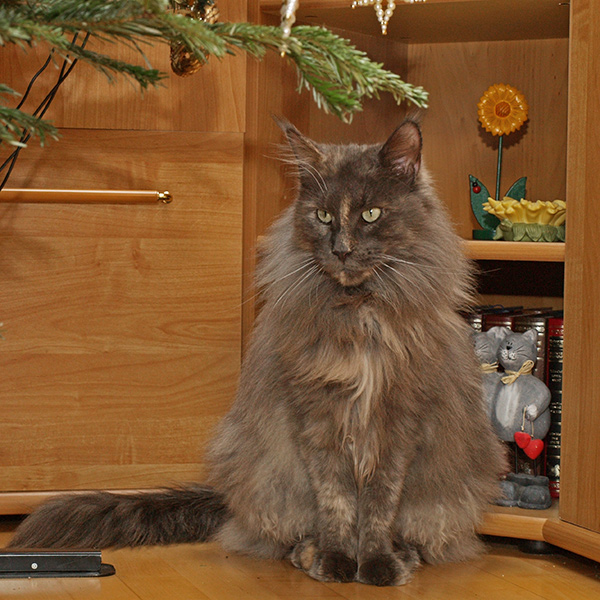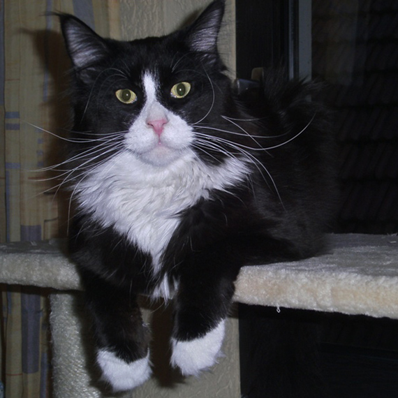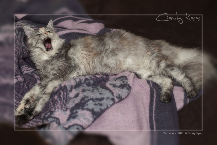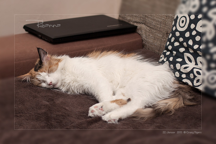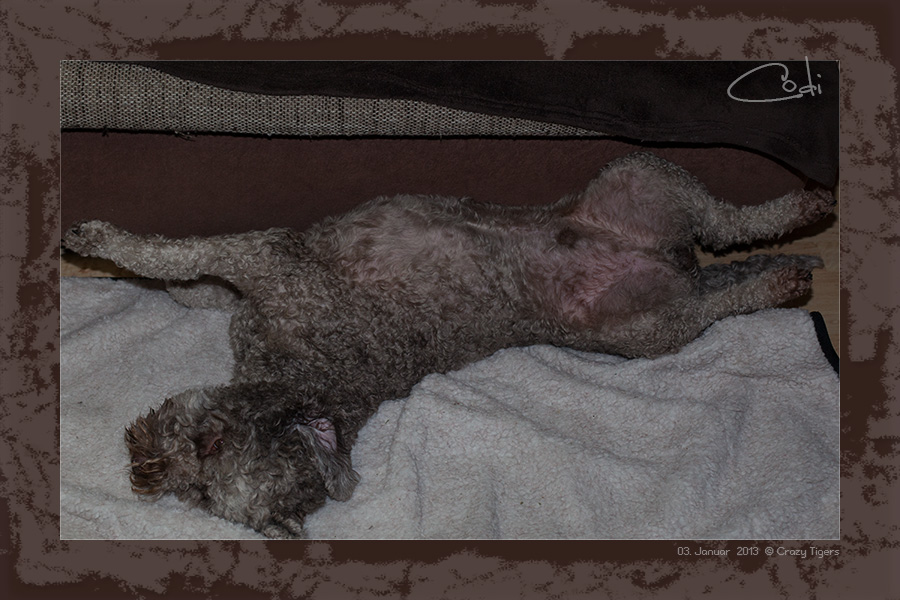 Heute mal wieder ein Foto unserer "Pudelkatze" Codi - bequem in Rückenlage.