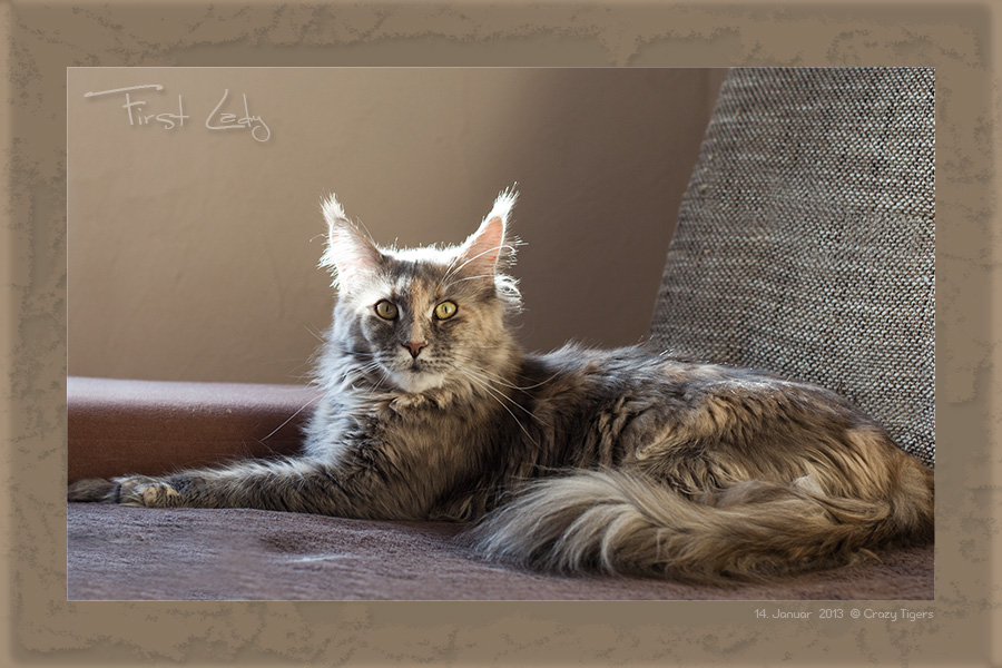First Lady bei Sonnenschein im Wohnzimmer-Gegenlicht.