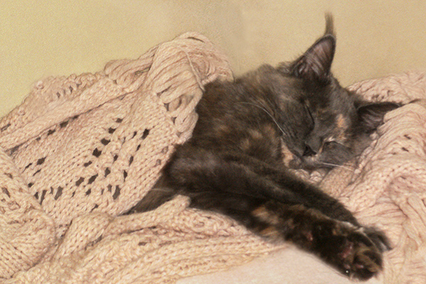 Juanita macht sich breit und sichert sich so einen gemütlichen Schlafplatz.