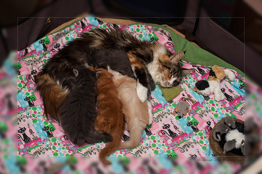 Noch zwei Bilder der N-Geschwister - die Mutti mit Nugget und einmal im Dreierblock.