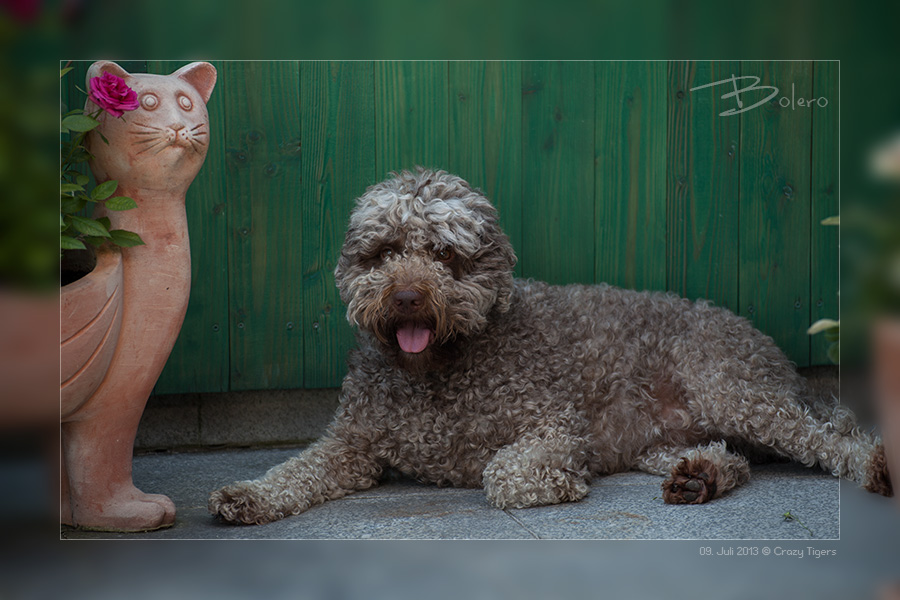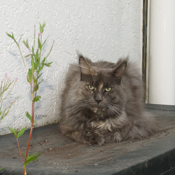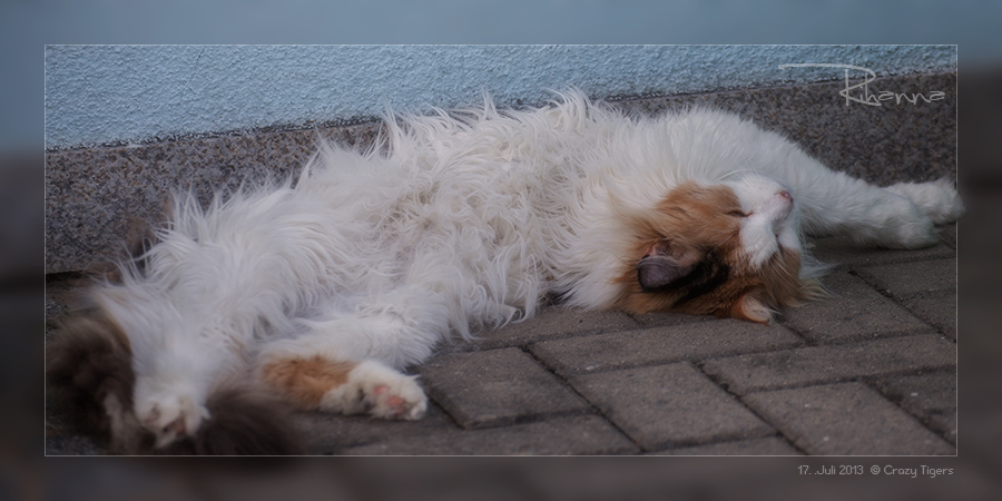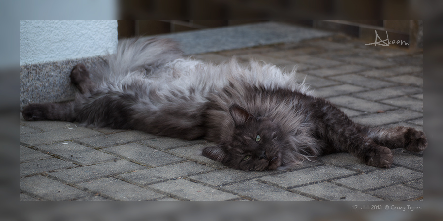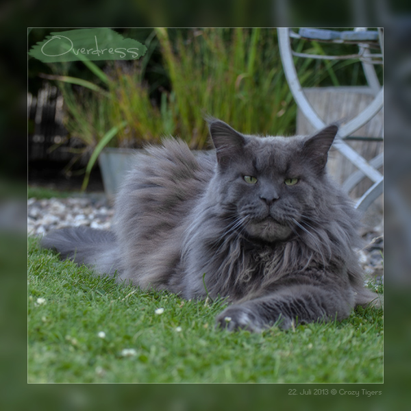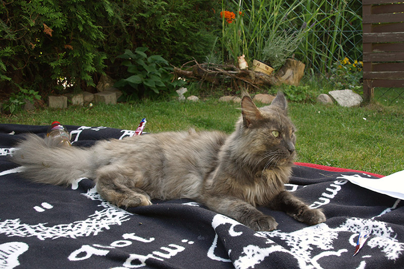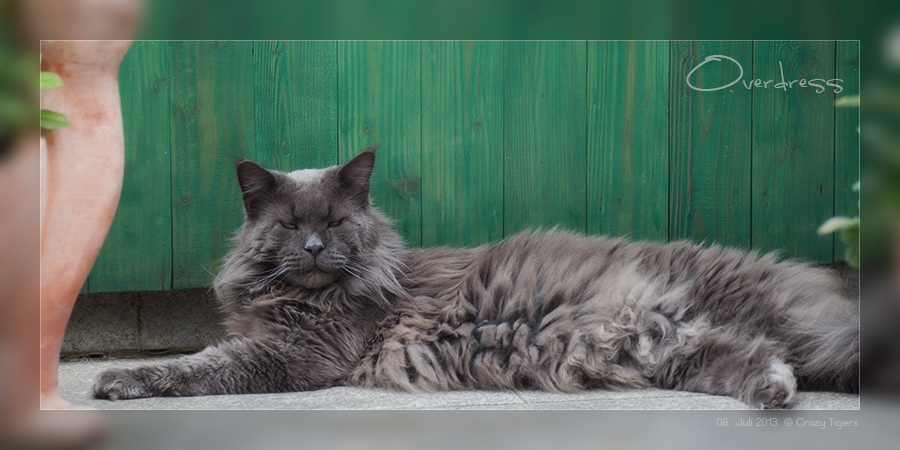 Bei diesem Klasse Wetter erfrischt sich Overdress auf den kühlen Granitplatten der schattigen Terrasse.