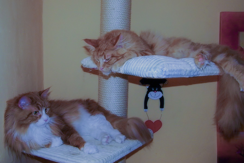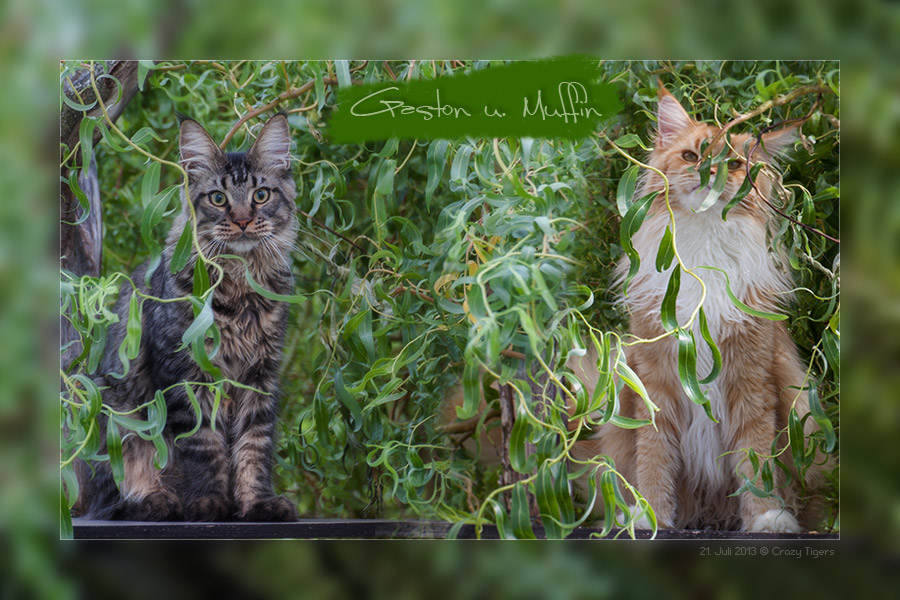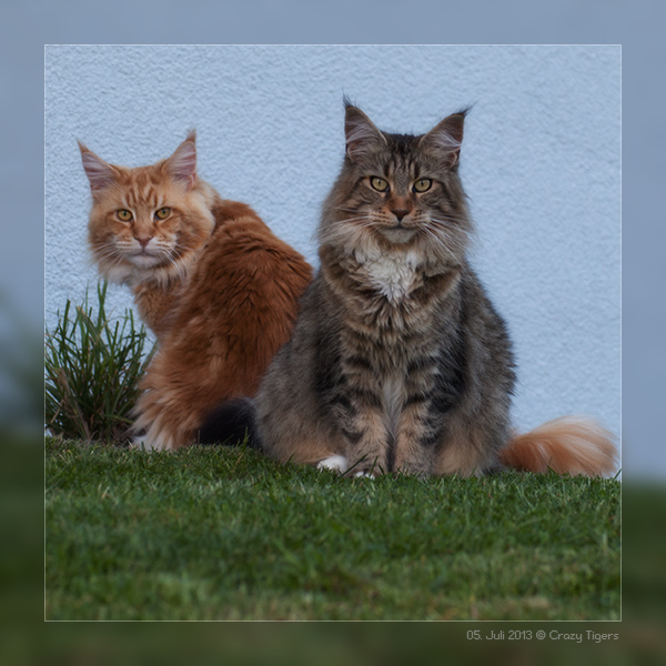 Gaston zeigt uns auf diesem Doppelbild seinen tollen Schwanz. Candy Kiss schaut neugierig in die Kamera.