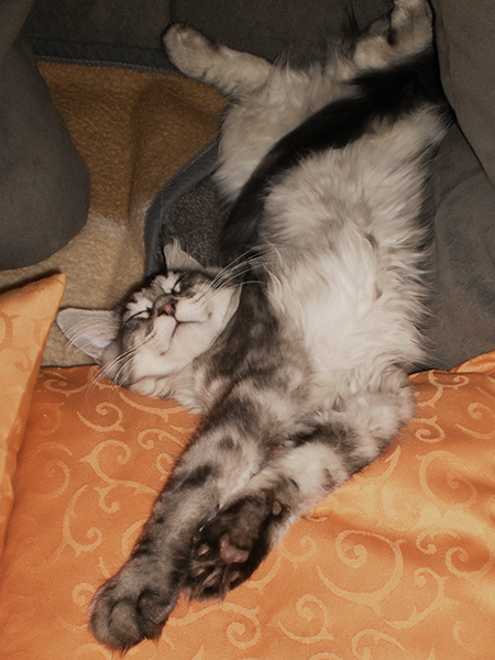 Quintessa legte sich für einen Schnappschuss ins Kuschelkissen.