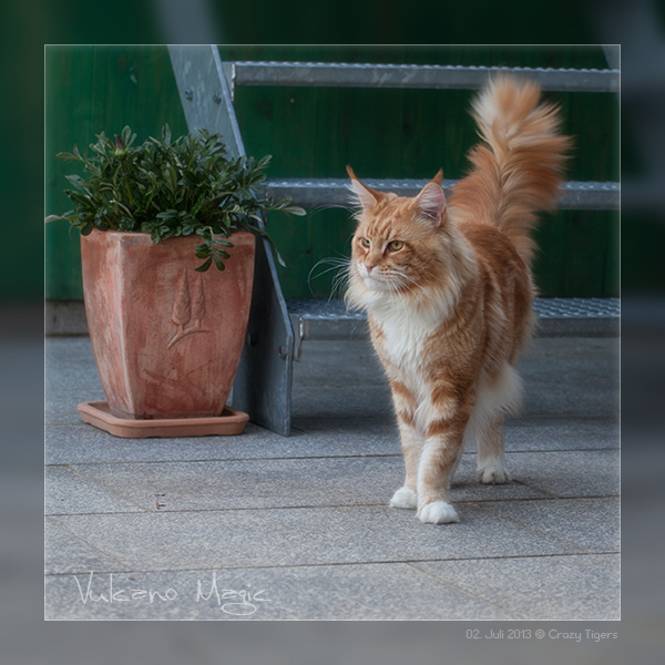 Vulcano Magic dreht kurz vor "Torschluß" noch eine letzte Gartenrunde. Michael schickt Bilder von Hardy und D'leh, der auch in dieser kleinen Schachtel sein Plätzchen findet.