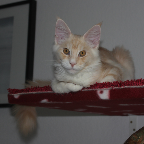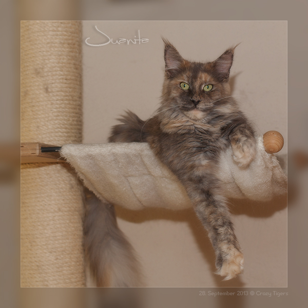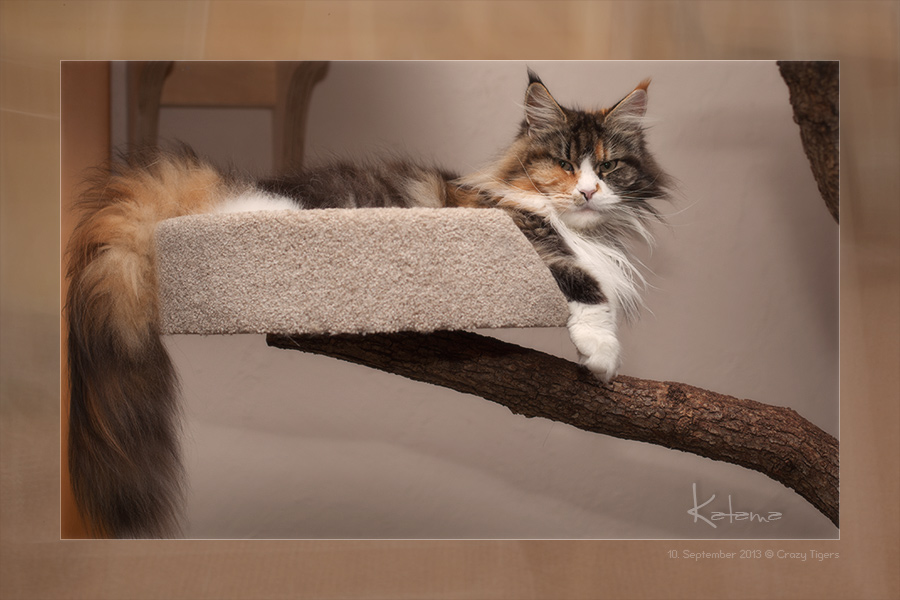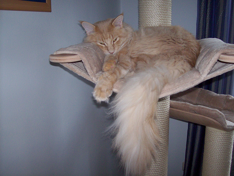 Katama hat sich in die Kratzbaumschale zu einem Nickerchen eingerollt.