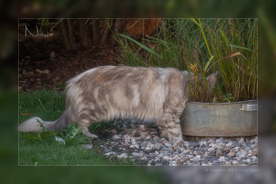 Gaston schaut Nomia zu, wie sie genüßlich das abgestandene Wasser aus der