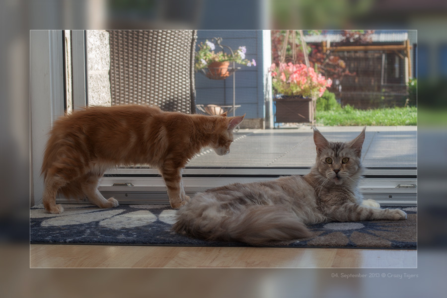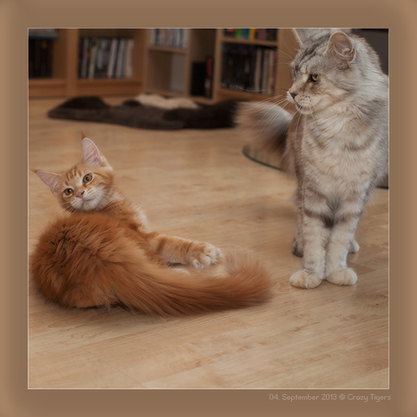 Heute zwei Schnappschüsse von Nomia mit Rocky - auch sie kümmert sich um die "Neulinge".