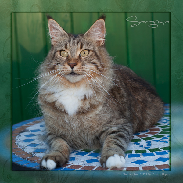 Saragosa hat es sich auf dem kleinen Gartentisch gemütlich gemacht.