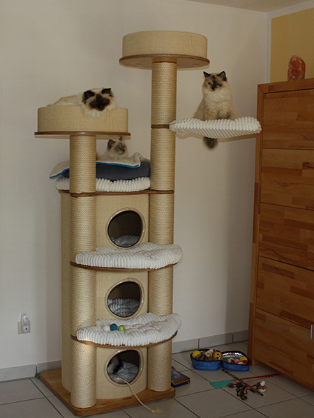 Kratzbaum im Wohnzimmer ist sehr beliebt.