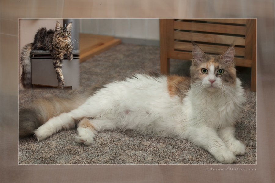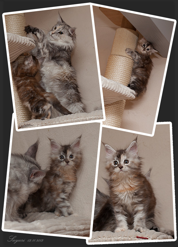 Unser Nesthäkchen ist schon 7 Wochen alt. Dieses Bild zeigt Sayuri zusammen mit ihrer Mutti auf dem Kratzbaum und hier das Ganze nochmals als Vierer-Set.