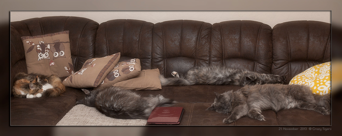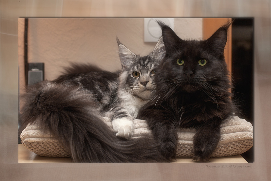 Radsha ist oft und sehr gerne mit seiner "Ersatzmutti" Black Baccara zusammen - hier liegen beide bei mir neben dem PC.