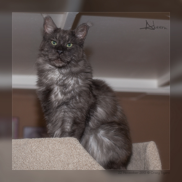 Akeem fühlt sich als "King", wenn er von der obersten Schale des Kratzbaums auf unsere Katzenbande herunter schaut.