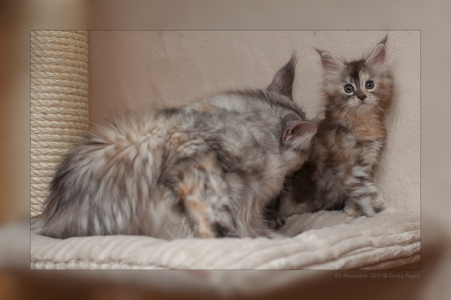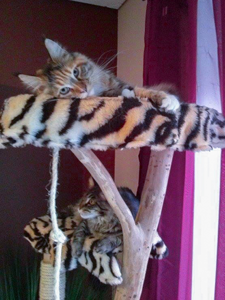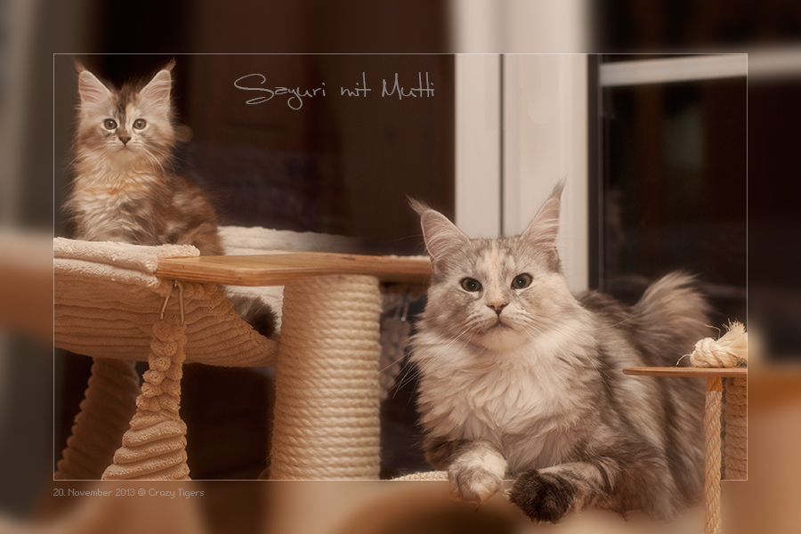 Sayuri hat mit ihrer Mutti den Kittenkratzbaum besetzt.
