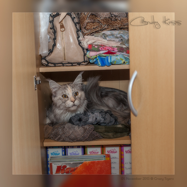 Candy Kiss macht einfach die Schranktüre auf und sucht sich das passendes Fach für ein ruhiges Schlafplätzchen.