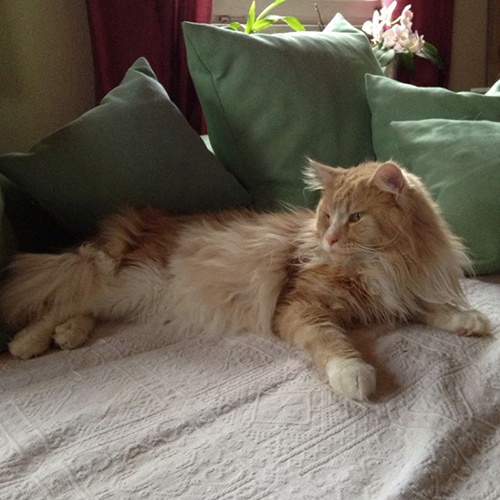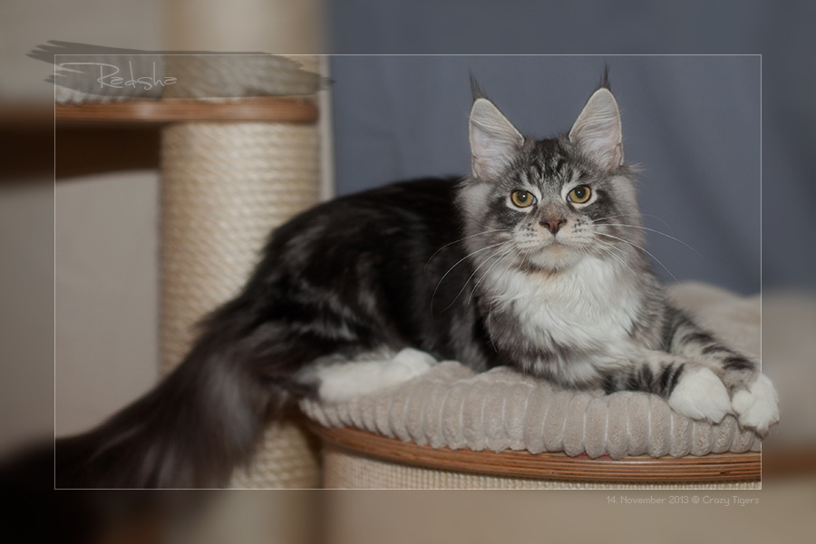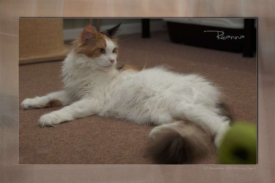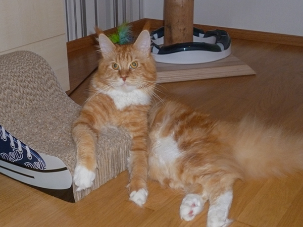 Heute nochmals ein Bild von Radsha - hier hat er sich elegant auf die Kratzbaumtonne gelegt.