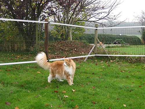Neues von unseren Auswanderern - Petra sendet ein Bild von Paco, Sandra ist mit ihren drei Lieblingen umgezogen und hat nun einen ausbruchsicherer Garten - Klasse! Dieses Bild zeigt Humphrey beim Rundgang im neuen Gelände.