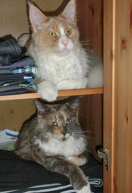 Heike schickt ein Bild von Joanne und Nugget im Kleiderschrank.