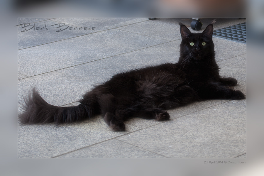 Black Baccara nutzt die schöne warme Sonne für ein "Sonnenbad" auf der Terrasse.