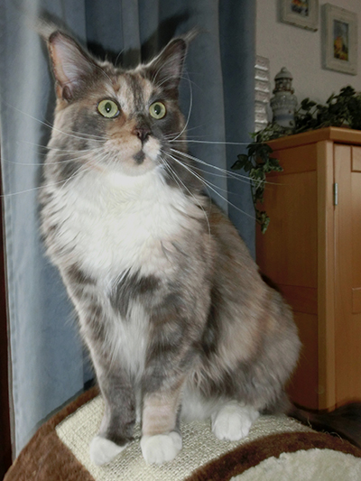 Chloe unsere Kastratin benutzt immer noch sehr gerne und extrem lange das Tretelkissen.