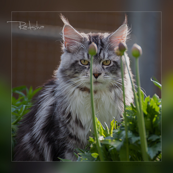 Radsha versucht sich hinterm Zier-Lauch zu verstecken.