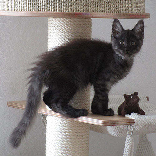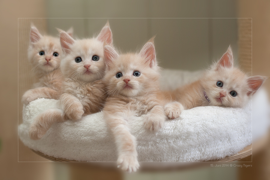 X-Wurf drängen sich in der Kratzbaumschale zusammen.
