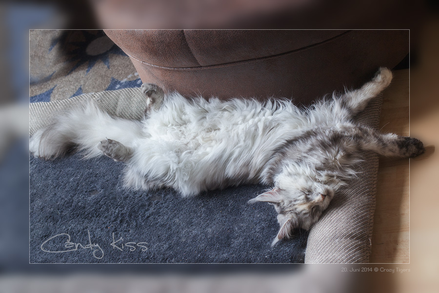 Candy Kiss schläft in üblicher "Verdreh-Entspannung".