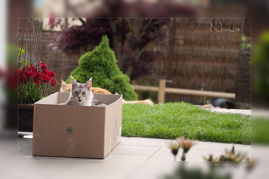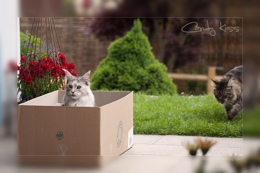Eine große Schachtel im Garten passt gut als Versteck und alle wollten rein -