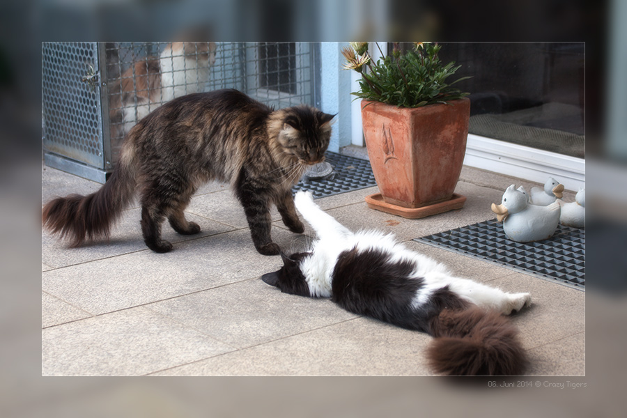 I'Xi und Gaston spielend auf der Terrasse und