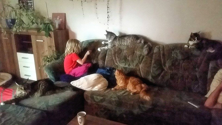 umgarnt seine Lieblingskatze Katama.