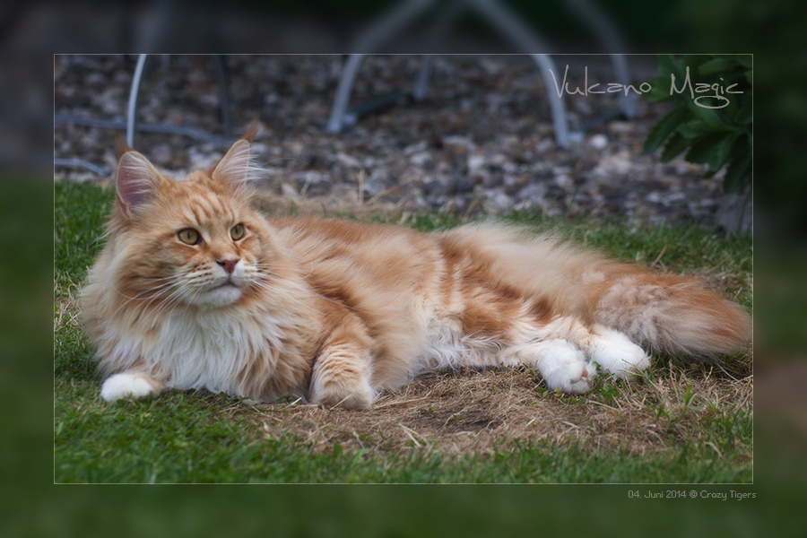 Vulcano Magic liegt gemütlich im Gras und