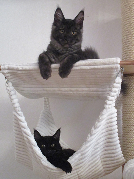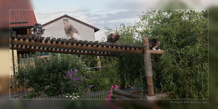 Zu viert auf dem Kratzbaumklettergerüst, das macht Spass.