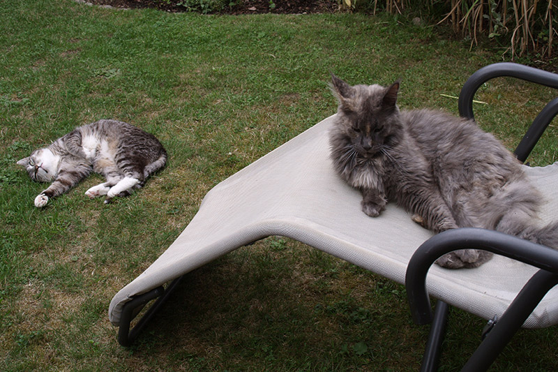 Xantos sagt Tschüss - er ist heute bei Maria in Kemnath eingezogen. Nomia hat sich ein schattiges Plätzchen ausgesucht und Radsha bleibt bei schwülem Wetter lieber im kühlen Wohnzimmer.