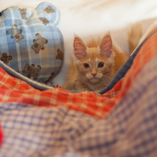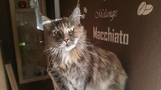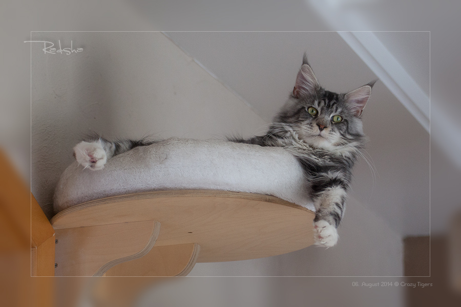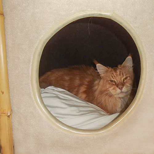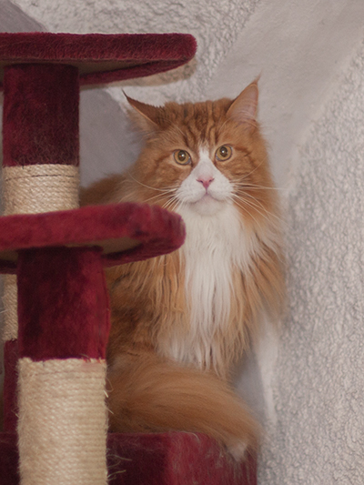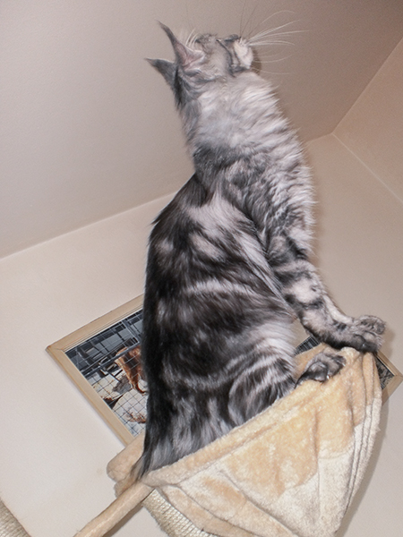 Christine schickt ein erstes Bild von Vulcano Magic - er hat die erste Nacht sehr gut überstanden und fühlt sich wohl in der Kratzbaumtonne.