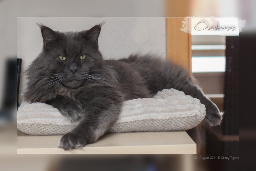 Unser Boss im Ruhestand - Overdress liegt total relaxed neben mir auf dem Schreibtischkissen.