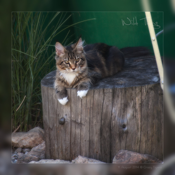 Drei Bilder von Wild Thing im Garten - Bild1, Bild2, Bild3.