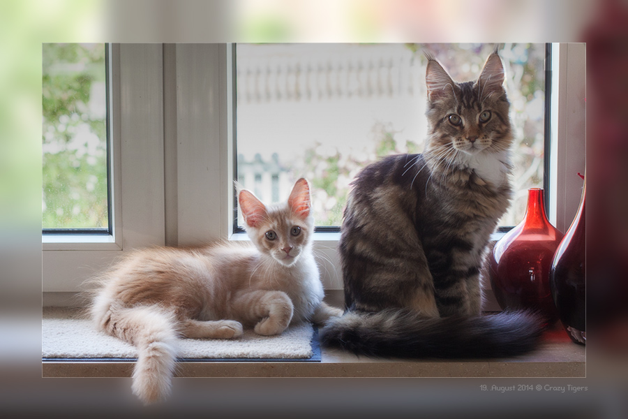 Xtreme und Wild Thing im Gegenlicht auf dem Fensterbrett.