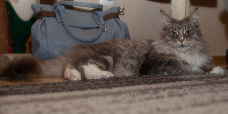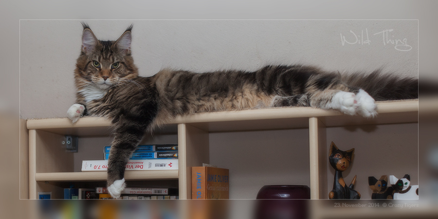 Henri (Wild Thing) hat sich das Wohnzimmer-Regal als Ruheplätzchen ausgesucht.