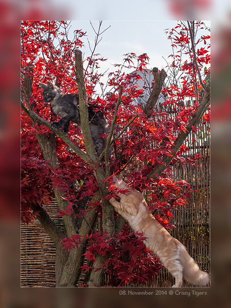klettern im Ahornstrauch.