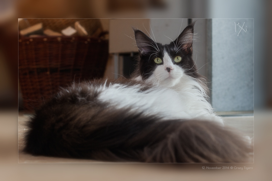I'Xi nutzt die einfallenden Sonnenstrahlen vor der Terrassentüre um "Wärme zu tanken".