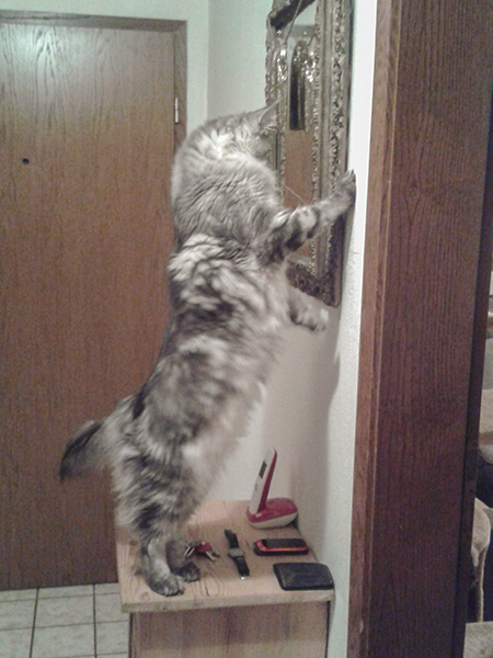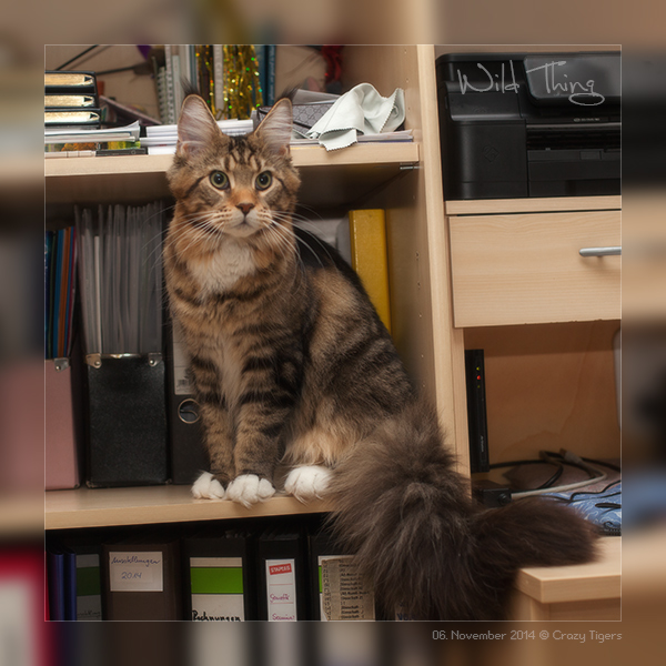 Wild Thing schaut sich im Schrank um - vielleicht kann er sich einen Federwedel schnappen.