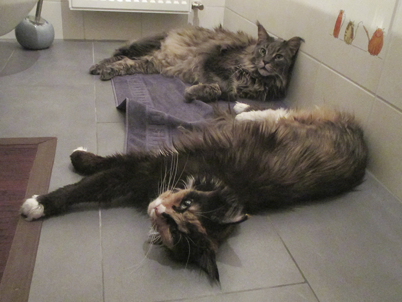 Corinna schickt ein Bild ihrer beiden Lieblinge (Giaccomo und HazelNut) - in der Winterzeit liegen sie gerne auf der Fußbodenheizung im Bad.