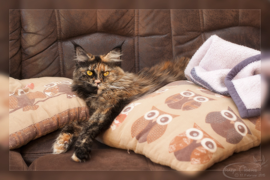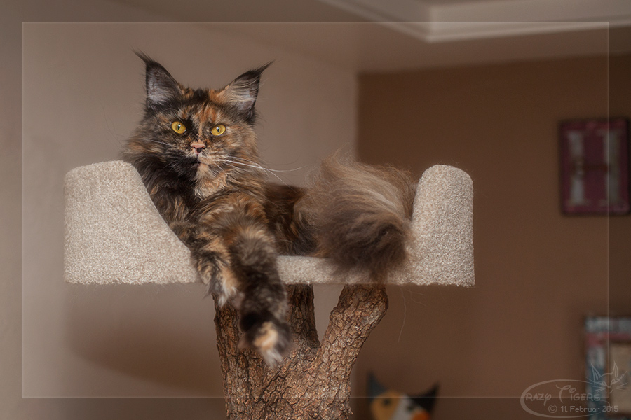 Ulyana hat sich in der obersten Kratzbaumliege "breit gemacht".