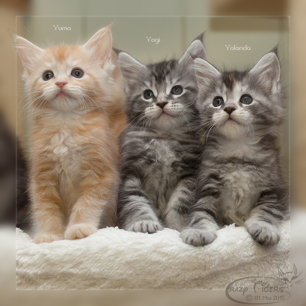 Dreierbild von des Y's mit Yuma, Yogi und Yolanda.