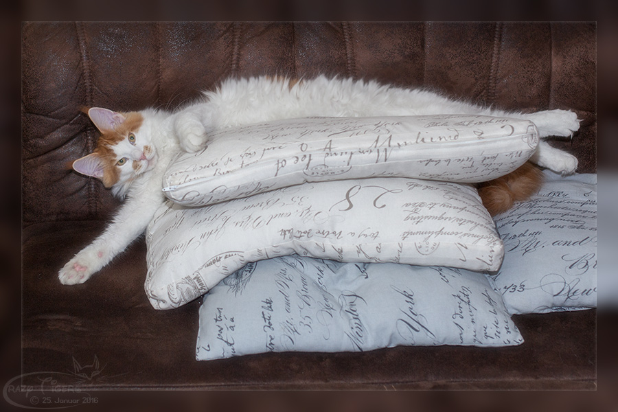 Adriano "macht sich breit" auf der Wohnzimmercouch.