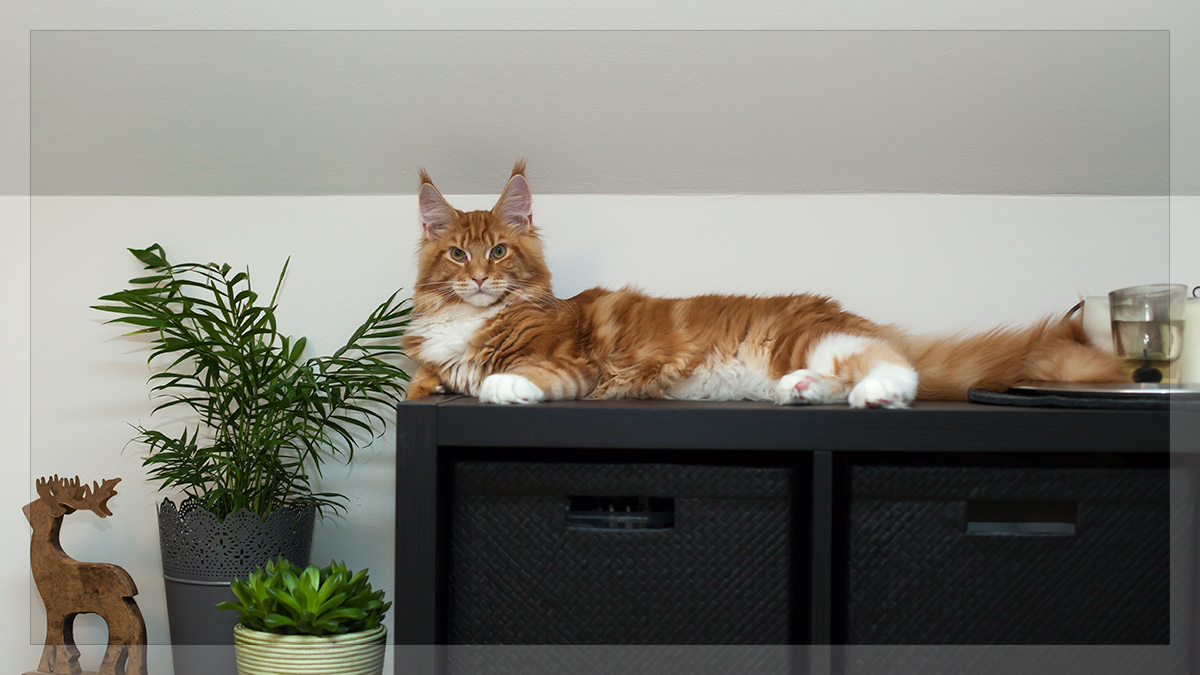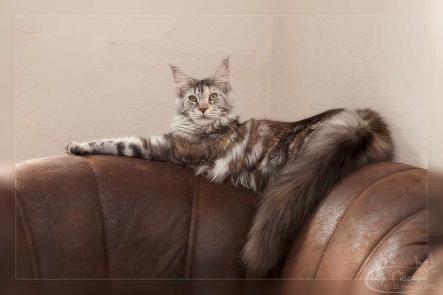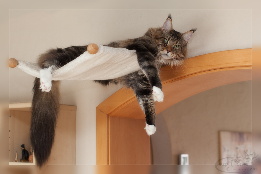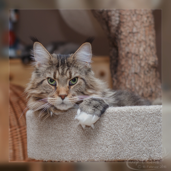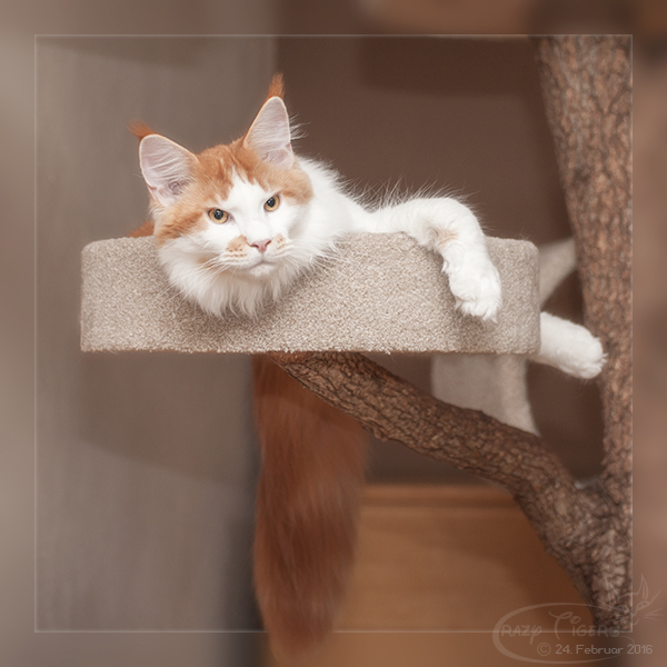 Yolanda auf der "obersten Etage" des Wohnzimmer-Kratzbaums.