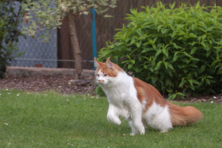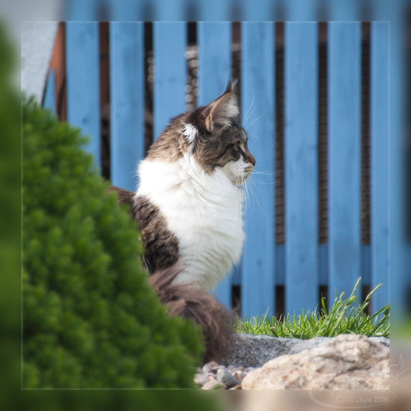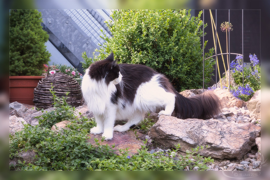 Henri macht die Gartenaufsicht und beobachtet rundum.
